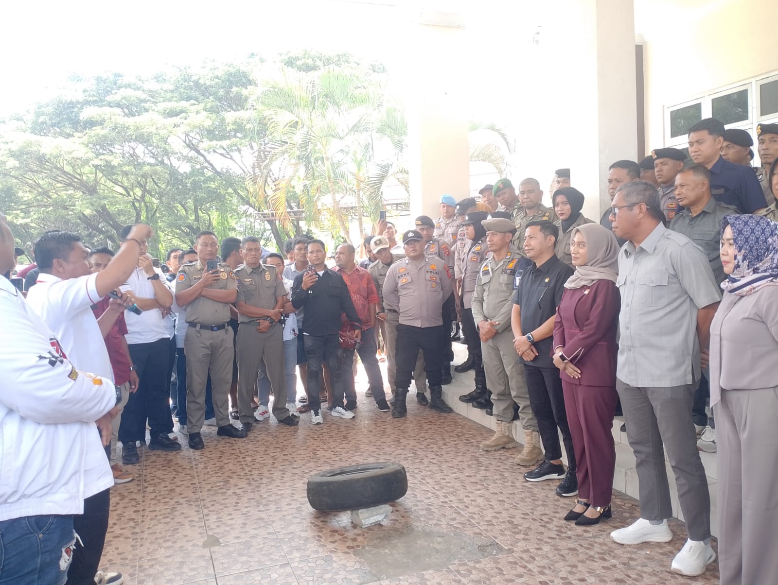 Tak lama berselang, Ketua DPRD Gorontalo Utara turun langsung menemui massa dan menerima pernyataan sikap yang diserahkan oleh perwakilan aliansi.
