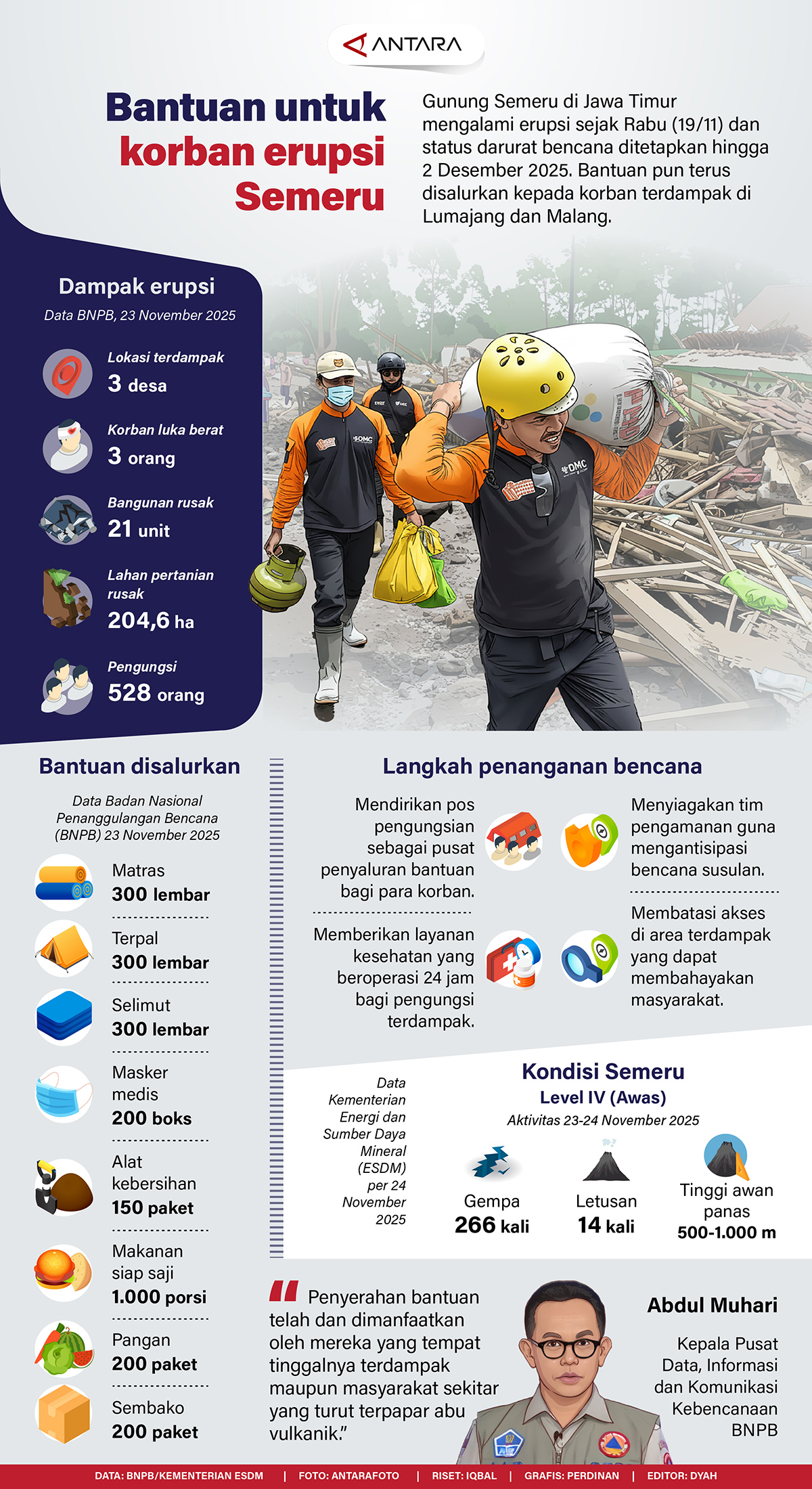 Home Menyapa Nusantara Bantuan Untuk Korban Erupsi Semeru Menyapa Nusantara Bantuan Untuk Korban Erupsi SemeruNadhira26/11/202515/12/2025 READ.ID – Gunung Semeru di Jawa Timur mengalami erupsi sejak Rabu (19/11) dan status darurat bencana ditetapkan hingga 2 Desember 2025. Bantuan pun terus disalurkan kepada korban terdampak di Lumajang dan Malang.Baca berita kami lainnya di
