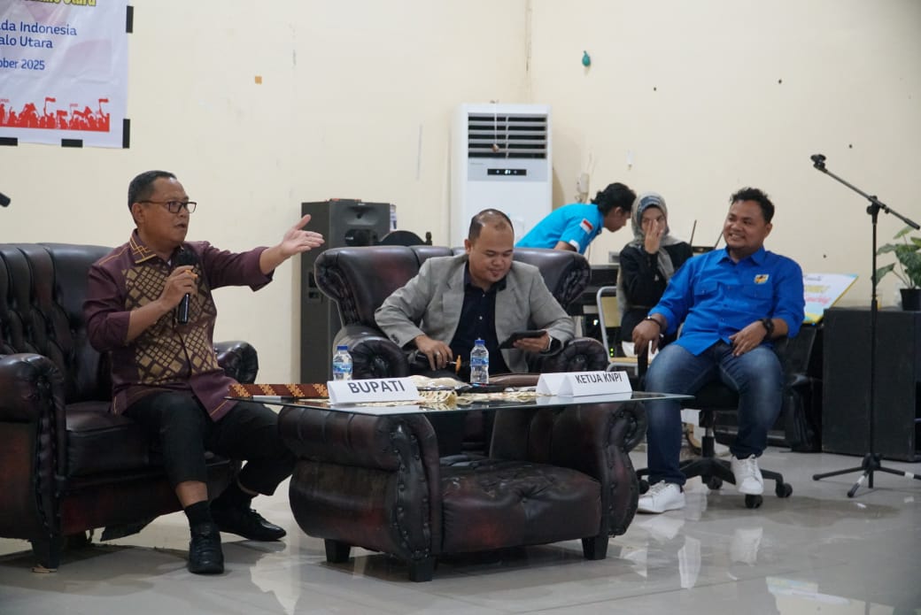 Kegiatan ini menghadirkan Bupati Gorontalo Utara, Thariq Modanggu, sebagai narasumber utama yang membahas capaian dan arah kebijakan pembangunan daerah pada periode awal kepemimpinannya bersama Wakil Bupati.