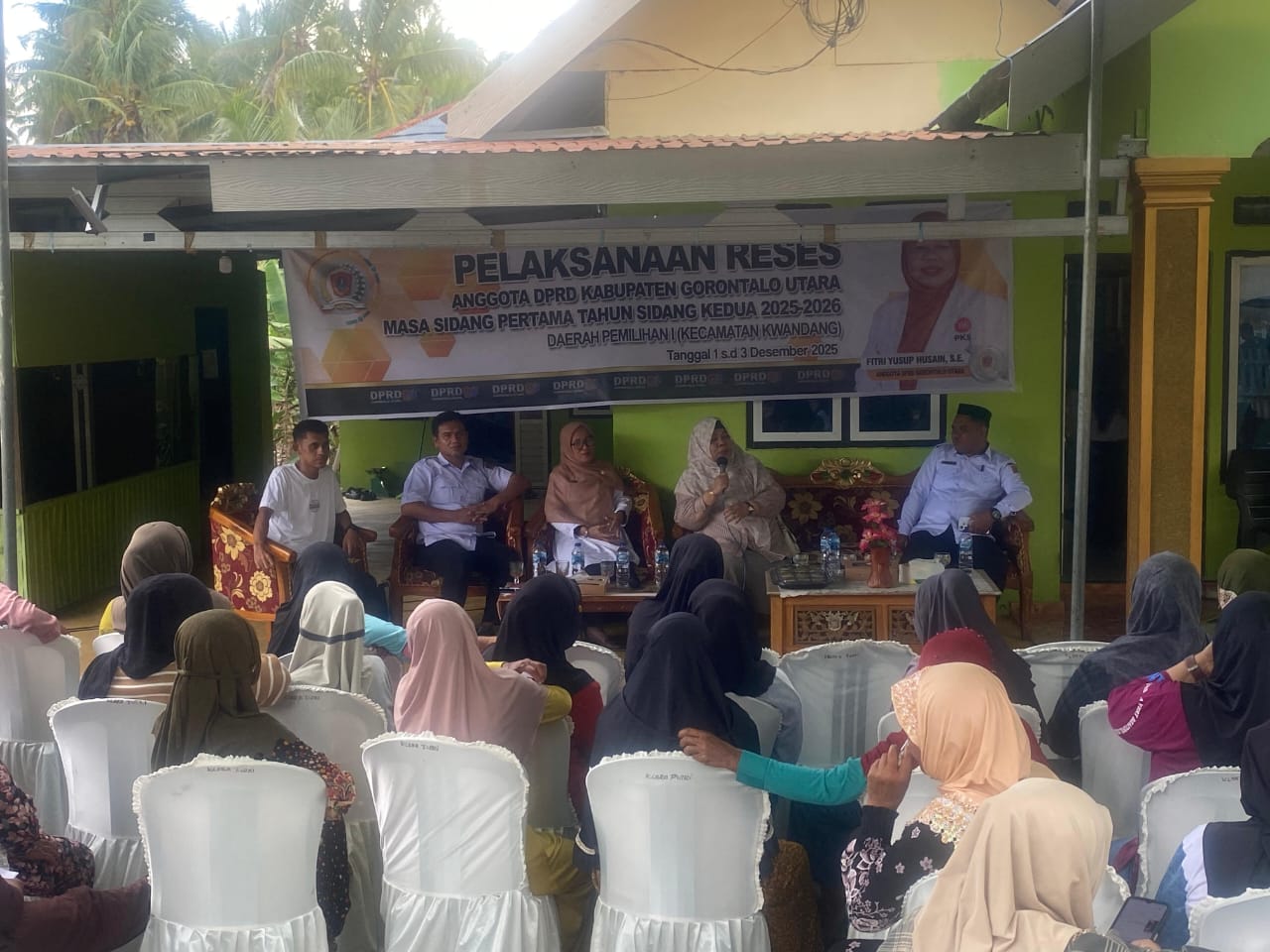 READ.ID – Agenda reses Anggota DPRD Gorontalo Utara, Fitri Yusup Husain, di Desa Botungobungo, Kecamatan Kwandang, pada Senin 03/12/2025, dibanjiri berbagai aspirasi dari masyarakat setempat.