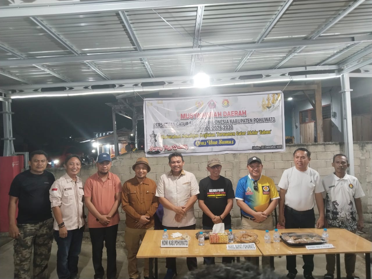READ.ID – Abdul Hamid Sukoli, yang akrab disapa Aya Yopin, terpilih secara aklamasi sebagai Ketua Persatuan Olahraga Catur Seluruh Indonesia (Percasi) Kabupaten Pohuwato dalam Musyawarah Cabang (Muscab) yang digelar pada Jumat malam (26/12/2025).
