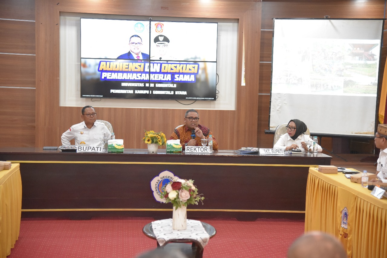 READ.ID – Kerja sama yang kembali terjalin antara UNG dengan Pemeritah Kabupaten Gorontalo Utara disambut baik oleh Rektor Prof. Dr. Ir. Eduart Wolok, ST., MT., IPU., ASEAN.Eng., sebagai bentuk sinergi antara perguruan tinggi dan pemerintah daerah dalam mendukung pembangunan dan kesejahteraan masyarakat. Ia menegaskan bahwa UNG siap menjadi mitra strategis bagi Pemerintah Kabupaten Gorontalo Utara, melalui penguatan kolaborasi di berbagai bidang.
