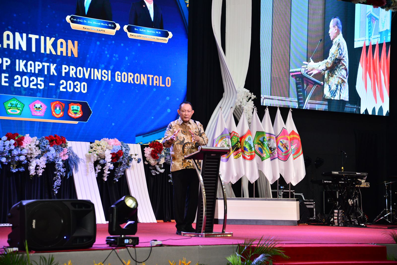 Hal itu disampaikannya pada pelantikan Ketua dan Pengurus DPP Ikatan Keluarga Alumni Pendidikan Tinggi Kepamongprajaan (IKAPTK) Provinsi Gorontalo periode 2025–2030 di Gedung Azlea Convention Center, Kamis (26/3/2026).