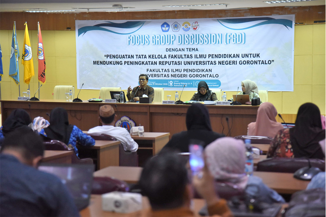 READ.ID – Dalam upaya memperkuat tata kelola kelembagaan yang efektif dan berorientasi pada peningkatan reputasi institusi, Fakultas Ilmu Pendidikan (FIP) UNG menyelenggarakan kegiatan Focus Group Discussion (FGD) bertajuk “Penguatan Tata Kelola Fakultas Ilmu Pendidikan untuk Mendukung Peningkatan Reputasi UNG”, Selasa (21/10).