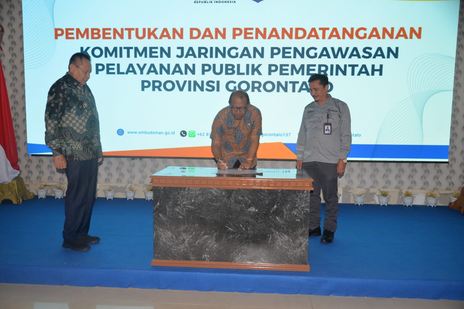 READ.ID – Gubernur Gusnar Ismail memimpin penandatanganan komitmen jaringan pengawasan pelayanan publik bersama Ombudsman RI di Ruang Dulohupa, Kantor Gubernur Gorontalo, pada Jumat (20/2/2026) pagi guna memastikan birokrasi lebih responsif terhadap pengawasan masyarakat.