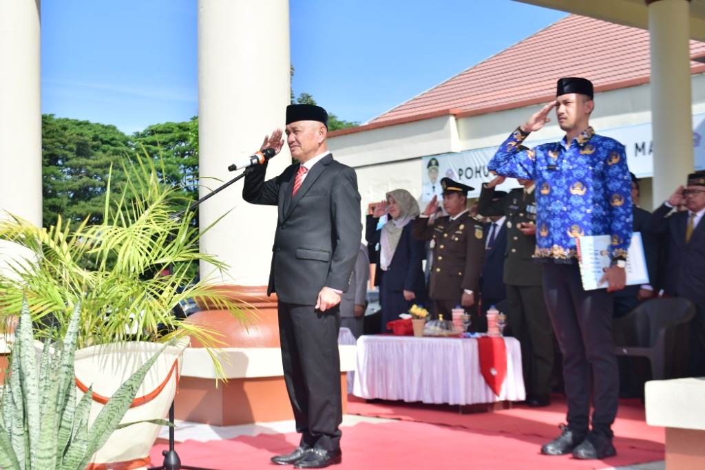 READ.ID – Pemerintah Kabupaten (Pemkab) Pohuwato, menggelar upacara bendera memperingati Hari Sumpah Pemuda ke-97, yang dirangkaikan dengan Apel Korpri tingkat Kabupaten Pohuwato, Selasa (28/10/2025)