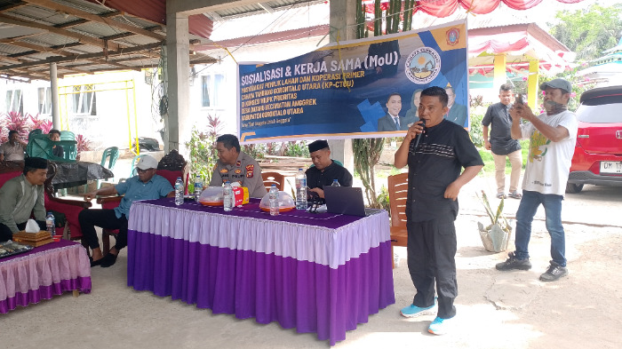 READ.ID – Pengelolaan tambang berbasis masyarakat mulai terlihat di Gorontalo Utara. Koperasi Cahaya Tambang Gorontalo Utara (KP-CTGU) menandai langkah awalnya melalui sosialisasi dan penandatanganan kerja sama (MoU) dengan pemilik lahan di wilayah konsesi WIUPK Prioritas, Desa Datahu, Kecamatan Anggrek, Jumat 10/04/2026.