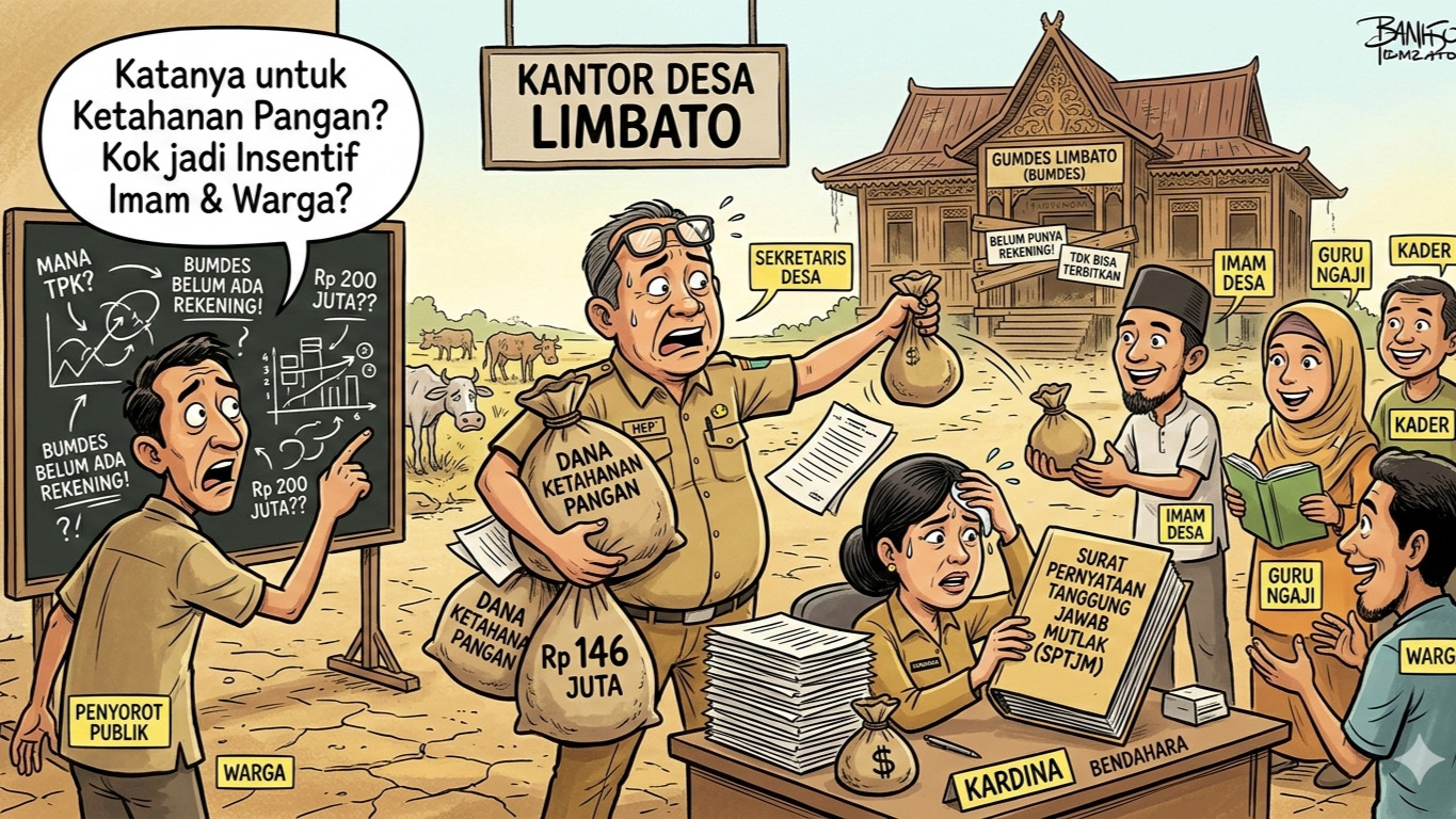 Sekretaris Desa Limbato, Hepriyanto Abubakar, menjelaskan bahwa pada awalnya anggaran ketahanan pangan direncanakan dikelola melalui Tim Pelaksana Kegiatan (TPK), Badan Usaha Milik Desa (BUMDes), atau pihak ketiga. Namun rencana tersebut tidak dapat dijalankan karena situasi di desa saat itu tidak memungkinkan.