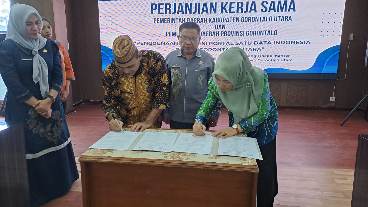 READ.ID – Pemerintah Provinsi Gorontalo dan Kabupaten Gorontalo Utara menandatangani perjanjian kerja sama (PKS) dalam pemanfaatan aplikasi satu data