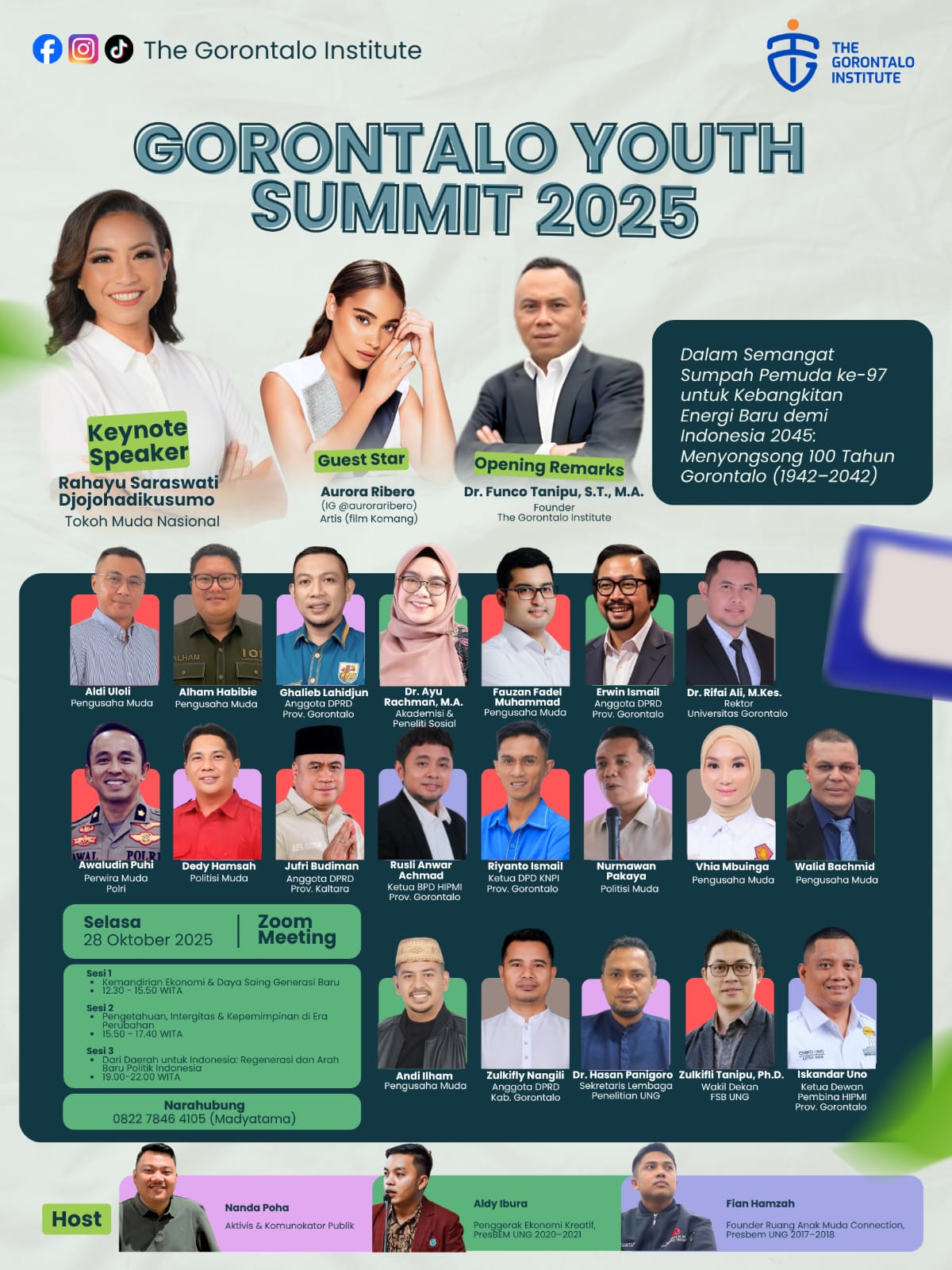 READ.ID  — Dalam semangat Sumpah Pemuda ke-97, The Gorontalo Institute akan menggelar Gorontalo Youth Summit 2025 dengan tema “Energi Baru untuk Indonesia 2045: Menyongsong 100 Tahun Gorontalo (1942–2042)”. Acara ini akan berlangsung pada Selasa, 28 Oktober 2025, secara daring melalui Zoom Meeting. Forum ini menjadi ruang strategis bagi generasi muda untuk merumuskan arah dan arsitektur masa depan Gorontalo menuju abad ke-21.