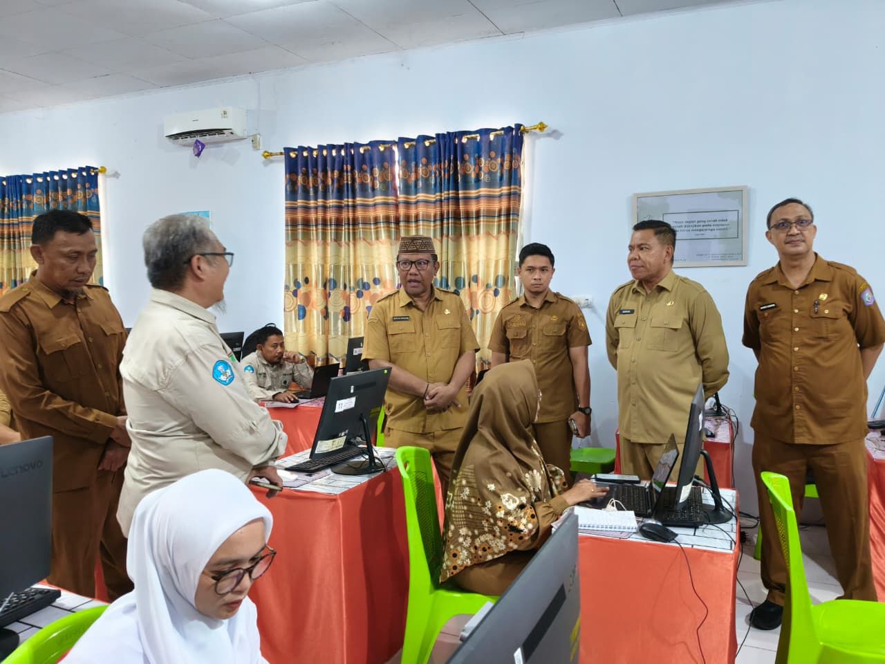 READ.ID – Sekretaris Daerah Provinsi Gorontalo, Sofian Ibrahim bersama jajaran Dinas Pendidikan dan Kebudayaan memantau langsung pelaksanaan Tes Kemampuan Akademik (TKA) jenjang SMP/MTs sederajat yang dipusatkan di Control Room penyedia TKA Provinsi Gorontalo, bertempat di SMA Negeri 3 Kota Gorontalo, Senin, (6/4/2026).