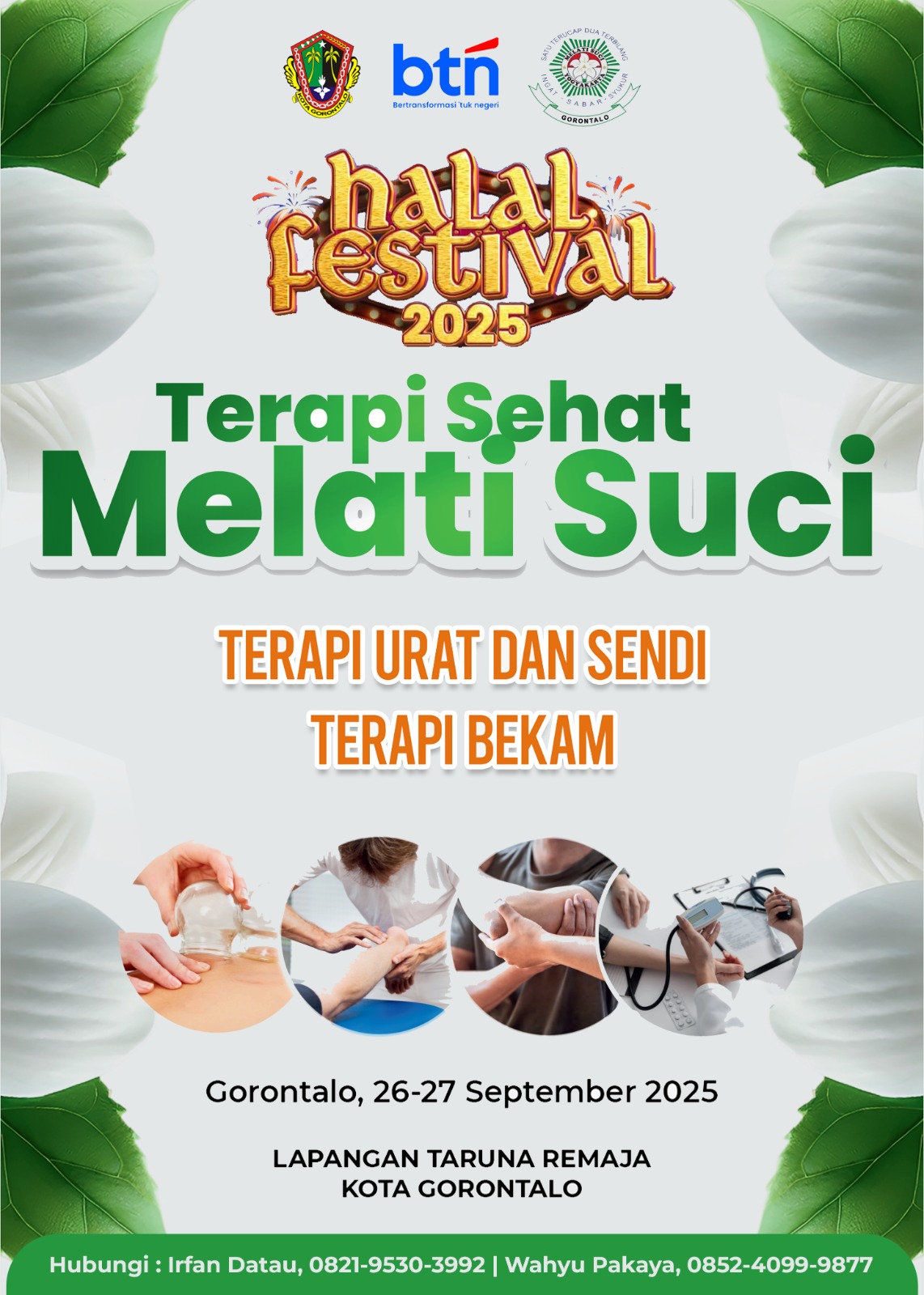 Halal Festival 2025 di Gorontalo tidak hanya menjadi ajang hiburan dan pameran, tetapi juga sarana edukasi. Melalui kegiatan seperti terapi sehat ini, masyarakat mendapat kesempatan langsung merasakan manfaat pengobatan tradisional yang diwariskan secara turun-temurun.