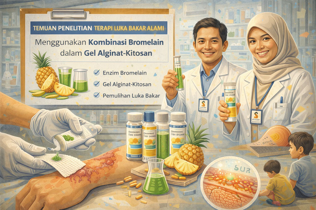 Salah satu bahan alami yang menarik perhatian dunia medis adalah enzim bromelain yang terdapat pada tanaman nanas. Bromelain dikenal memiliki sifat antiinflamasi, antibakteri, serta kemampuan untuk merangsang pembentukan jaringan baru. Dalam penelitian terbaru, enzim ini dikombinasikan dengan alginat dan kitosan dalam bentuk hidrogel untuk meningkatkan efektivitas penyembuhan luka bakar.