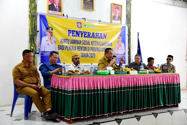 Dalam kunjungannya kali ini Gubernur Gusnar bertatap muka dengan 321 warga dari Desa Tiohu dan Olimohulo. Agenda utama dari kunjungan Gusnar kali ini adalah penyerahan Kartu BPJS Ketenagakerjaan bagi para pekerja rentan, yang memang sudah dijanjikannya lalu sejak masa kampanye Pilkada 2024.