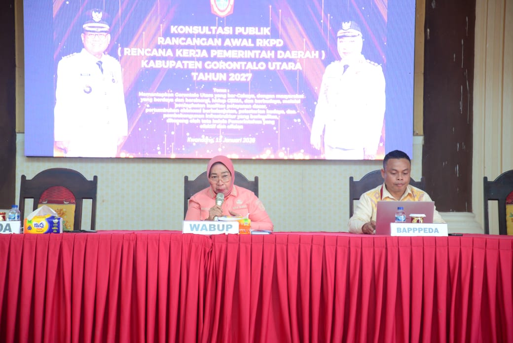 READ.ID – Pemerintah Kabupaten Gorontalo Utara menggelar Forum Konsultasi Publik Rancangan Awal Rencana Kerja Pemerintah Daerah (RKPD) Tahun 2027 yang berlangsung di Aula Gerbang Emas, Rabu 15/1/2026. Kegiatan ini dibuka langsung oleh Wakil Bupati Gorontalo Utara, Nurjanah Hasan Yusuf.