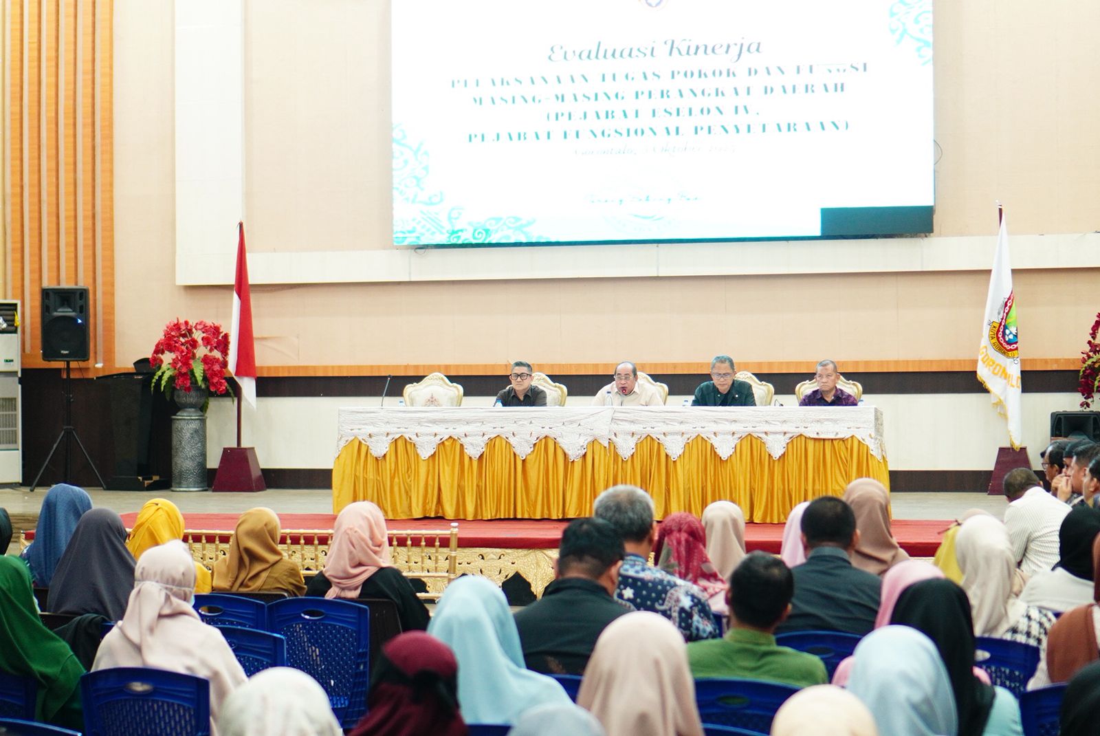 Instruksi ini disampaikan Wali Kota Adhan pada kegiatan evaluasi kinerja pelaksanaan tugas pokok dan fungsi pejabat eselon IV, pejabat fungsional dan penyetaraan masing-masing perangkat daerah, Senin (6/10/2025) malam, di Bandayo Lo Yiladia (BLY).