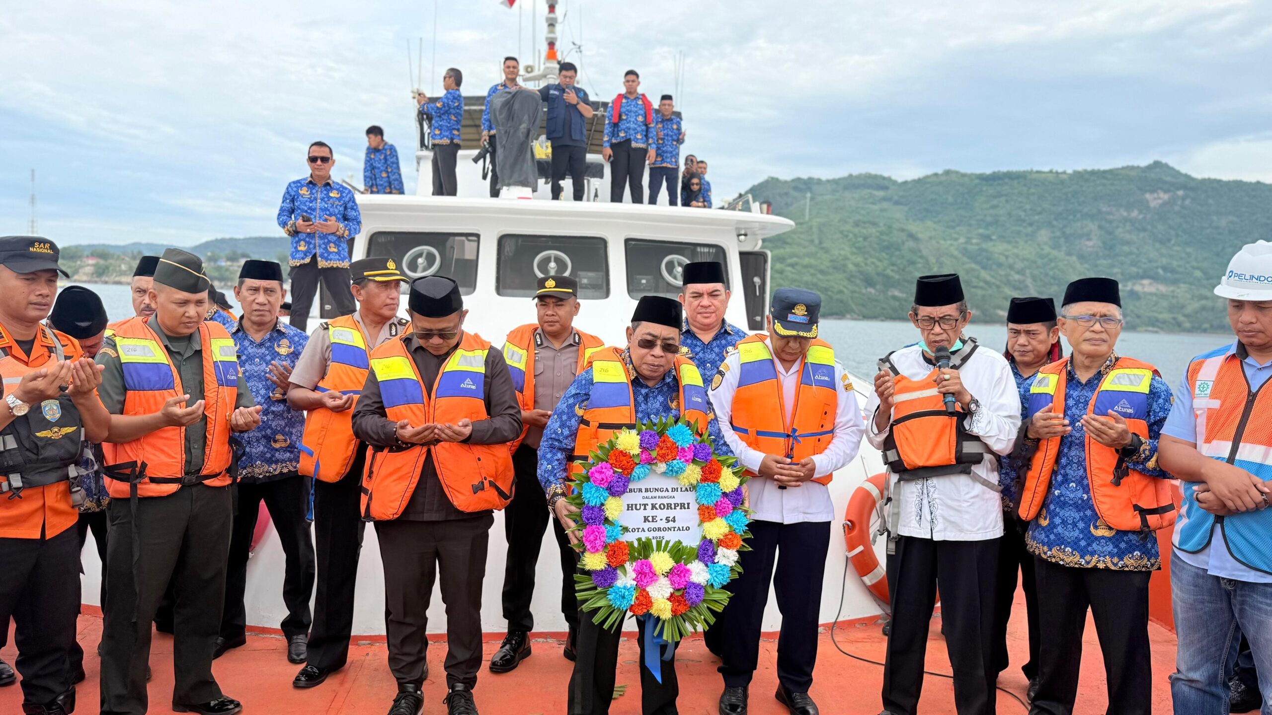 Wali Kota Gorontalo Pimpin Tabur Bunga di Laut Peringati HUT ke-54 KORPRI