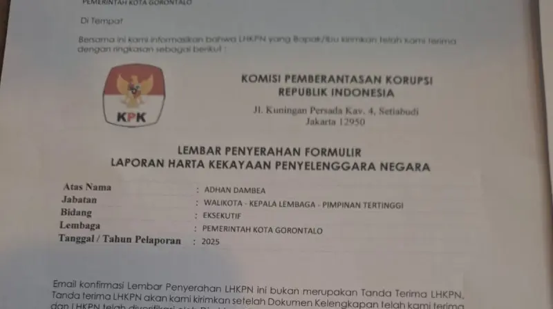 READ.ID – Wali Kota Gorontalo, Adhan Dambea melaporkan harta kekayaannya ke Komisi Pemberantasan Korupsi (KPK). Ini sebagai bentuk keterbukaan dan komitmen terhadap pemerintahan yang bersih.